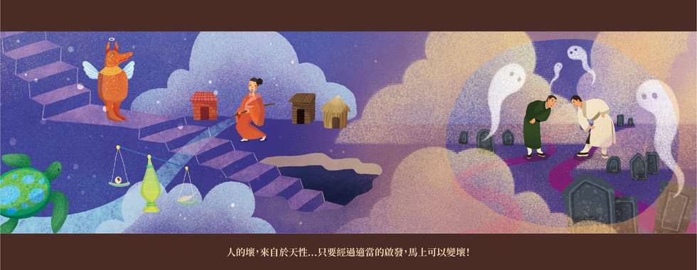 為了將富含深層寓意的劇目、透過插畫表現出來,大學剛畢業兩年的年輕繪者Mia Hsioa是看完了每一齣相聲後,再透過自身的反芻、花了整整一年才完成了十幅作品。
